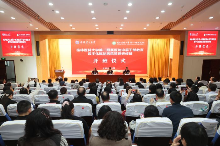 3月14-15日,桂林医科大学第一附属医院中层干部教育数字化赋能医院管理研修班(第一期)在我校顺利举办。桂林医科大学第一附属医院党委副书记、院长莫碧文,我校党委常委、副校长李政颖出席了开班仪式,桂林医科大学第一附属医院近200名中层干部齐聚校园,共学数字化赋能医院管理的前沿理念与实践方法,为医院高质量发展蓄能充电。